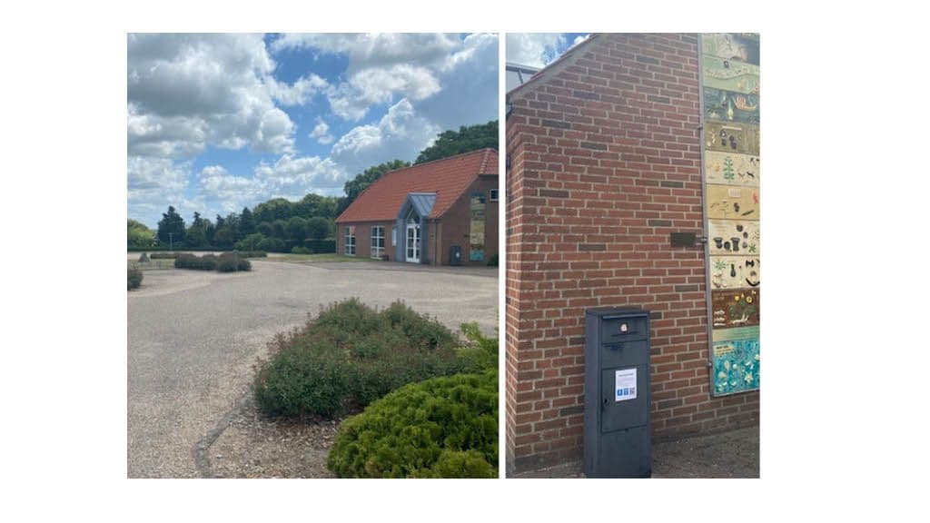 Find the stamp: The stamp is located at the confirmation house by Bække Church